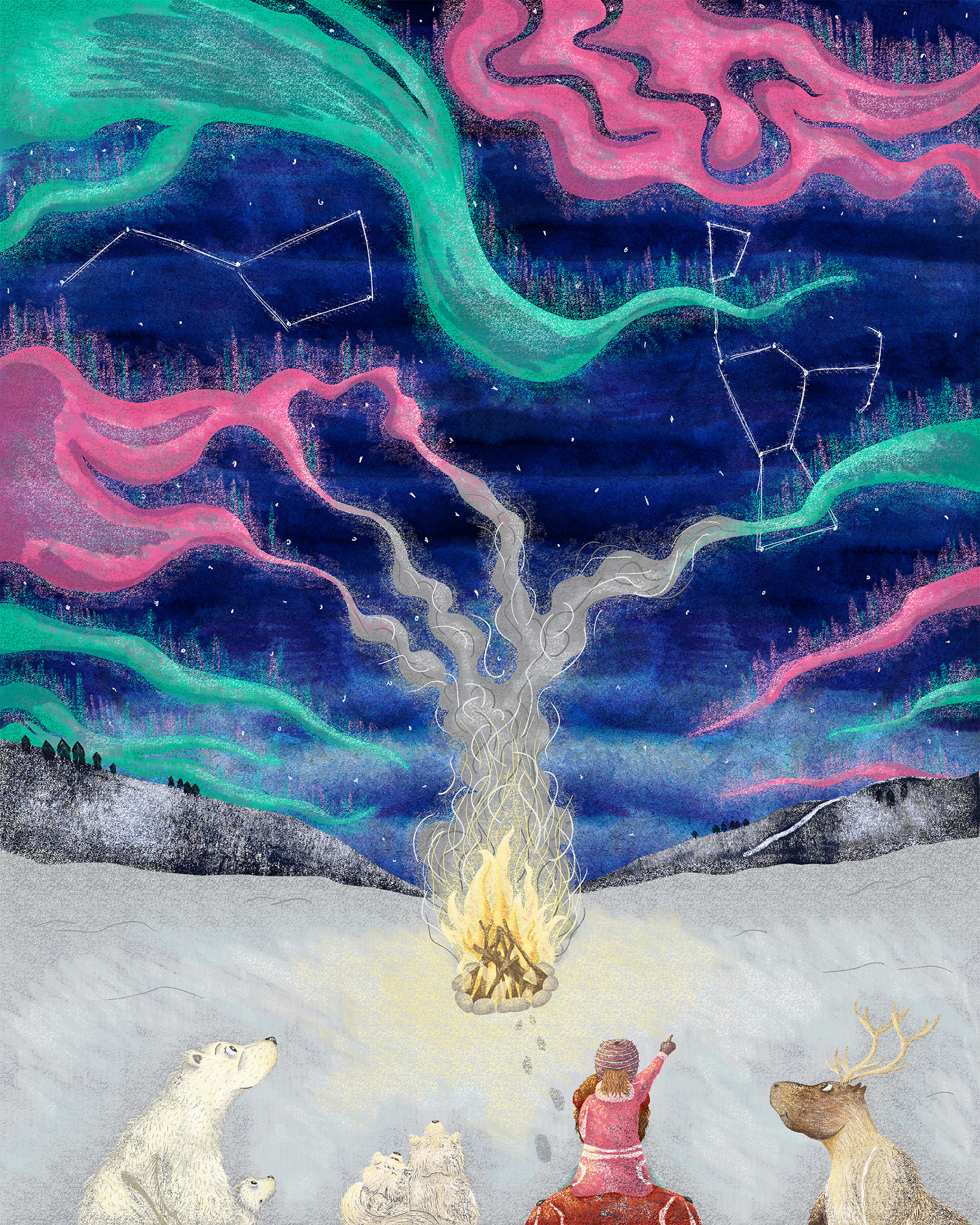 Back in 2019, The Cheltenham Illustration Awards hosted the competition titled, 'Tales of Unity'. Emily's entry here refers back to the origins of storytelling, that being, sharing stories around a fire.